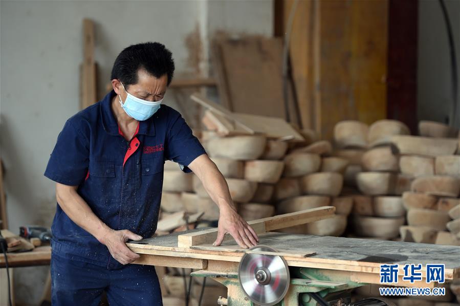 在安徽省岳西縣方紅創(chuàng)辦的工藝品公司,工人在制作工藝品(6月24日攝)。 新華社記者 周牧 攝