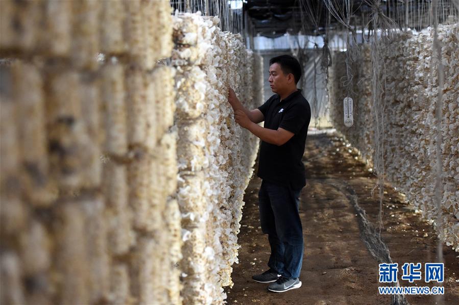 在安徽省岳西縣來榜鎮(zhèn)關(guān)河村,吳松青在大棚內(nèi)查看木耳長勢(6月24日攝)。 新華社記者 周牧 攝