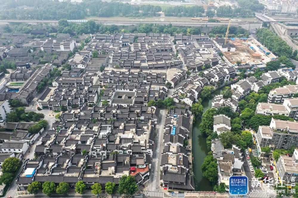 與小西湖片區(qū)一街之隔的老門(mén)東已改造一新(7月1日攝,無(wú)人機(jī)照片)。新華社記者 楊磊 攝
