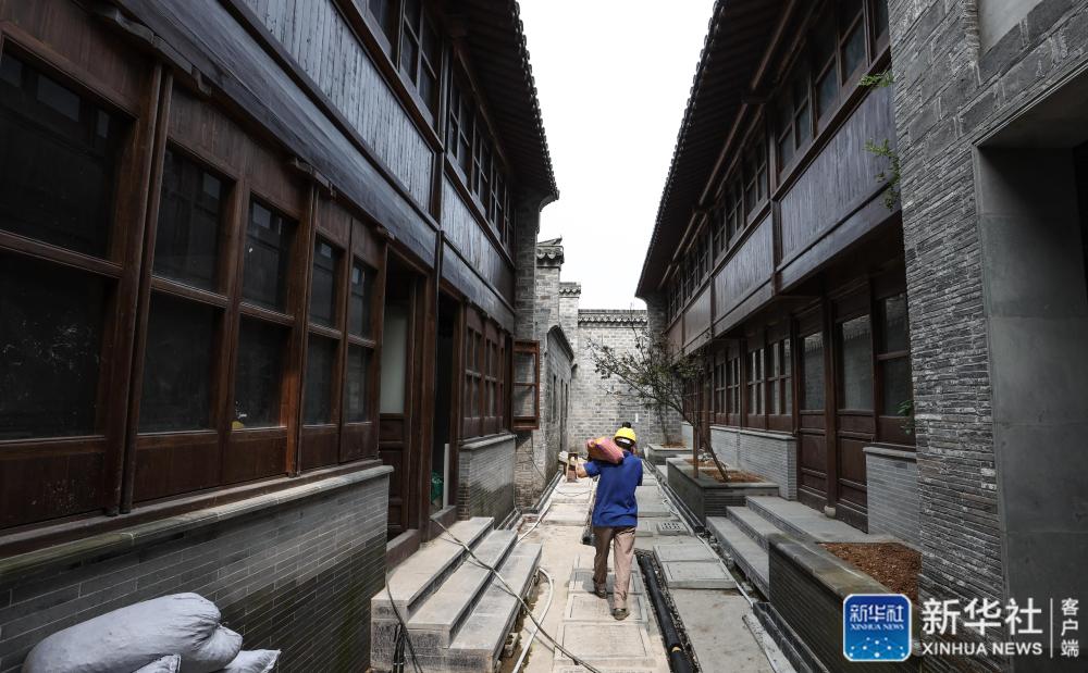 在南京小西湖片區(qū),幾名建筑工人在老宅里施工(7月1日攝)。新華社記者 楊磊 攝