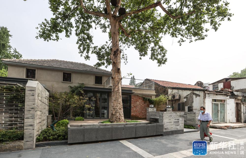 在南京小西湖片區(qū),一名居民走過(guò)一棟改造成咖啡屋的居民老宅(7月1日攝)。新華社記者 楊磊 攝