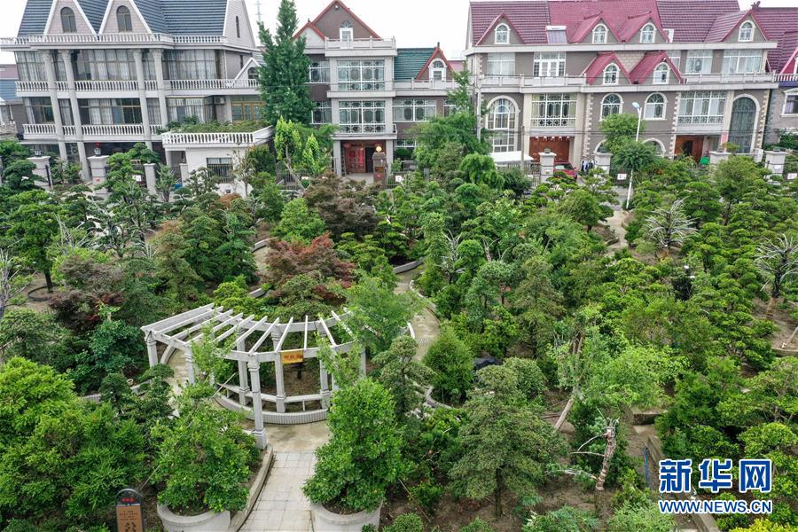 如皋市顧莊社區(qū)是中國(guó)盆景七大流派之一的如派盆景發(fā)源地,當(dāng)?shù)厝藦氖旅缒九杈暗闹谱麂N(xiāo)售,并將房前屋后打造成特色庭院,將“盆景”變成了“風(fēng)景”(6月13日攝,無(wú)人機(jī)照片)。 新華社記者楊磊攝