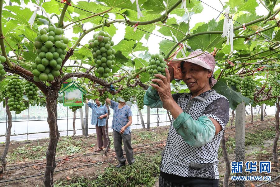 朱美蘭在南通市觀音山街道青龍橋社區(qū)殘疾人科技種植園里修剪葡萄(6月14日攝)。 新華社記者楊磊攝