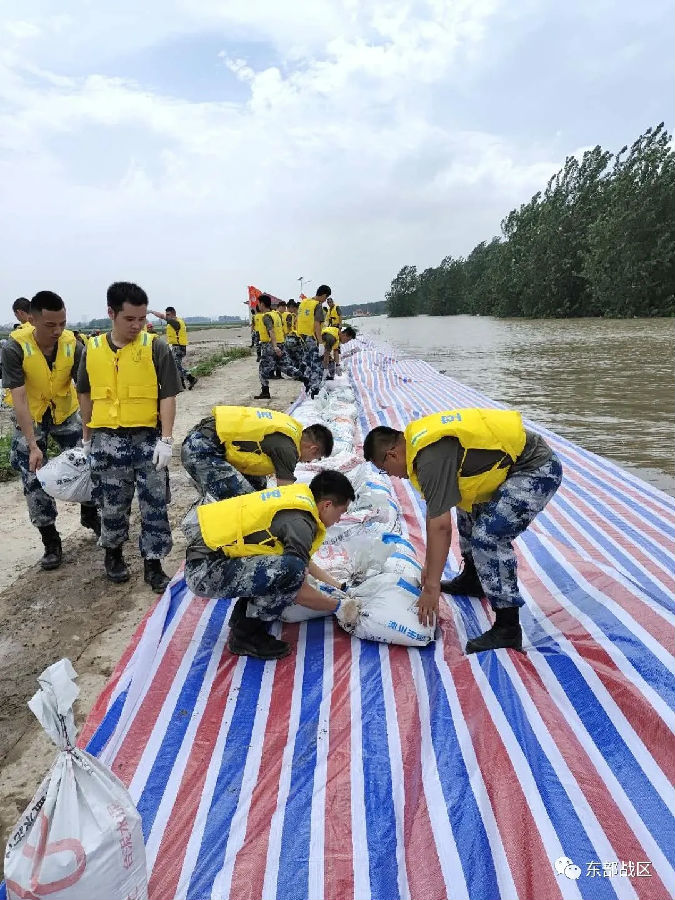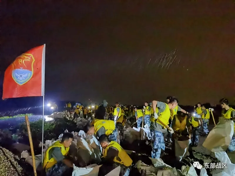 東部戰(zhàn)區(qū)空軍航空兵某師:100余名官兵冒雨加固堤壩