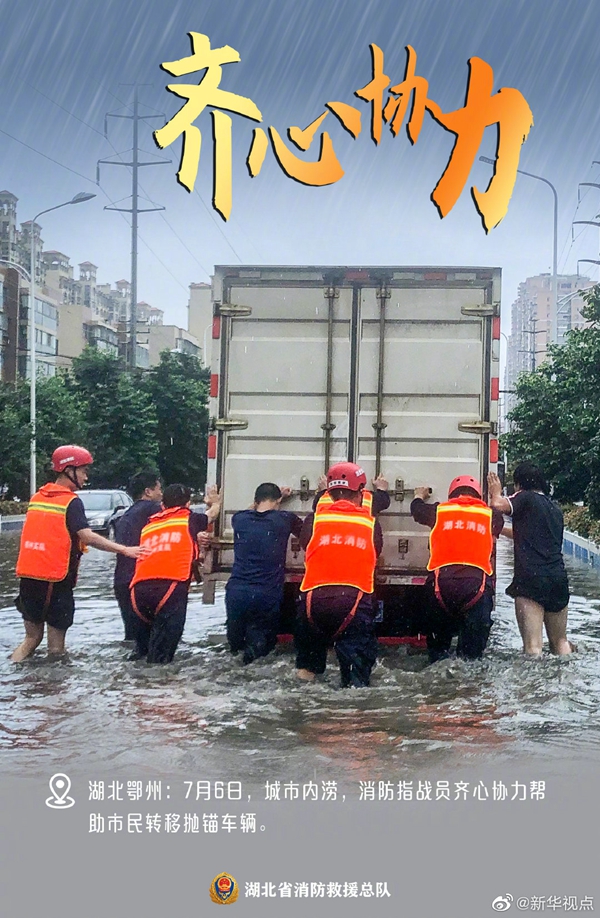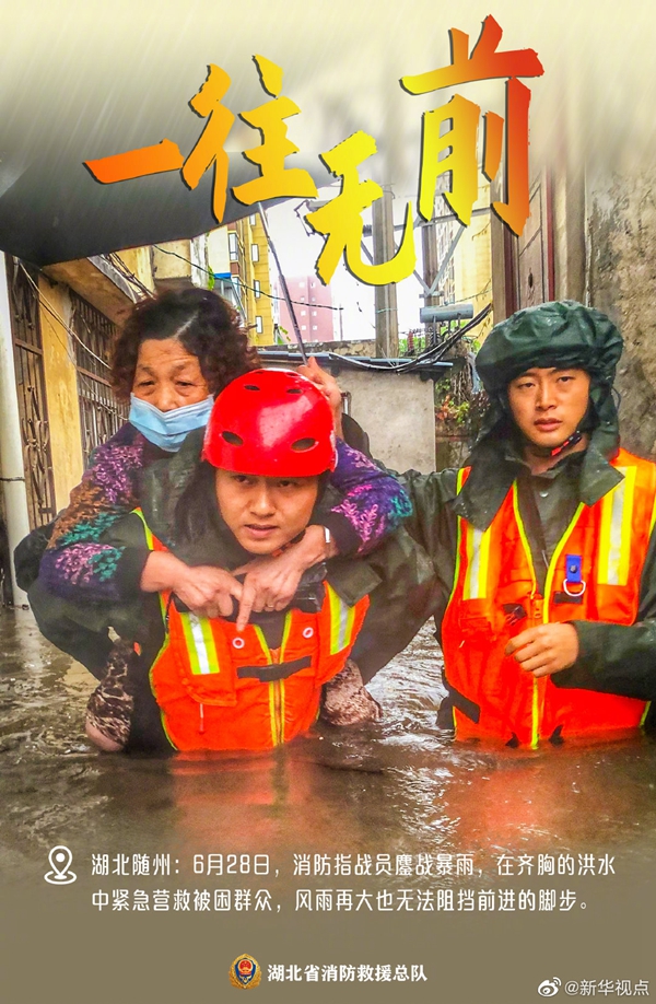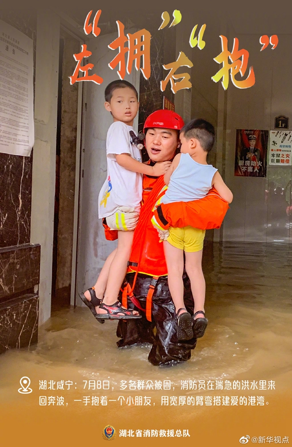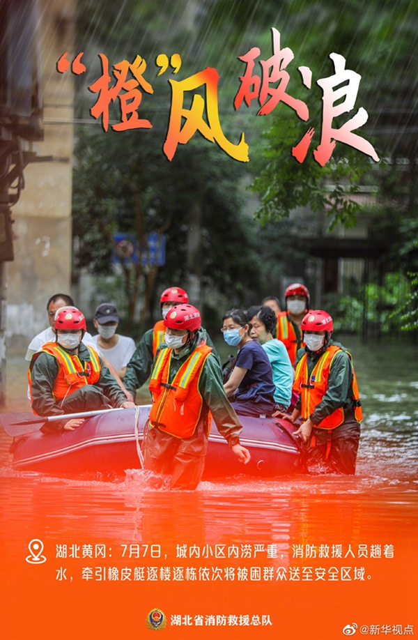 湖北近期遭遇持續(xù)強降雨天氣,部分地區(qū)出現(xiàn)洪澇災(zāi)害。洪水襲來,在救援現(xiàn)場奔波忙碌的消防救援人員,始終沖在一線,“橙”風破浪,守護著人民群眾的生命和財產(chǎn)安全。這抹“橙”,成為災(zāi)區(qū)人民心中最溫暖的底色。向“逆行者”致敬!(記者梁建強)