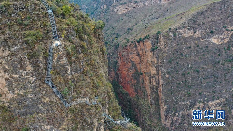 通往阿土列爾村的鋼梯一角(2019年11月23日攝,無(wú)人機(jī)照片)。新華社記者 王曦 攝