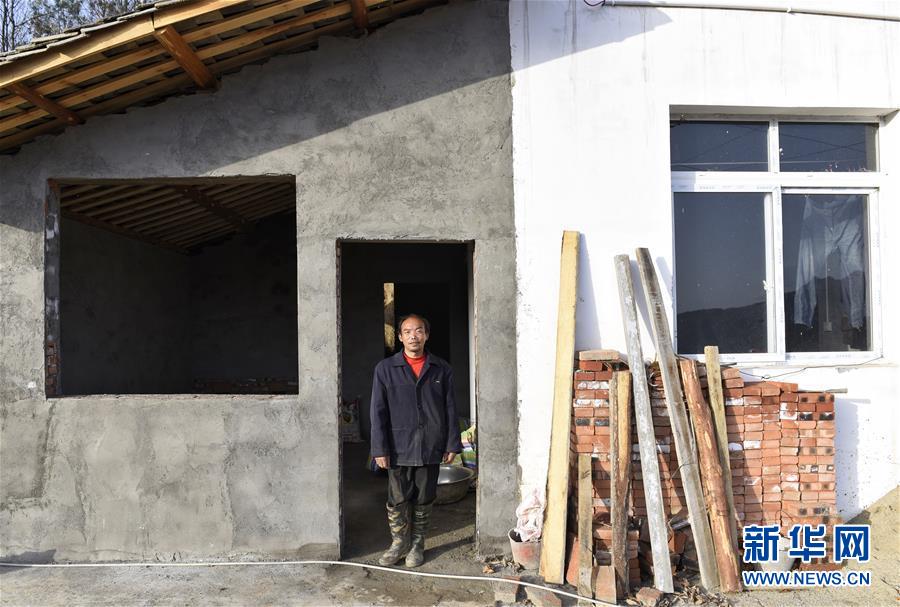 四川巴中市南江縣小田村村民秦發(fā)章在他正在修建的新房前留影(2018年3月20日攝)。新華社記者 劉坤 攝