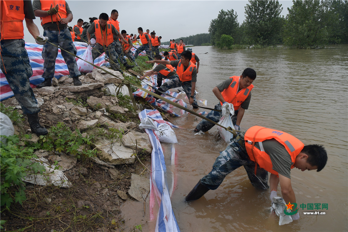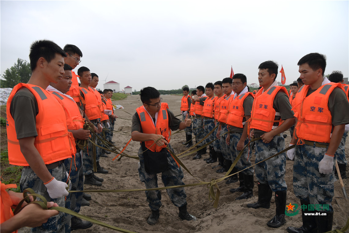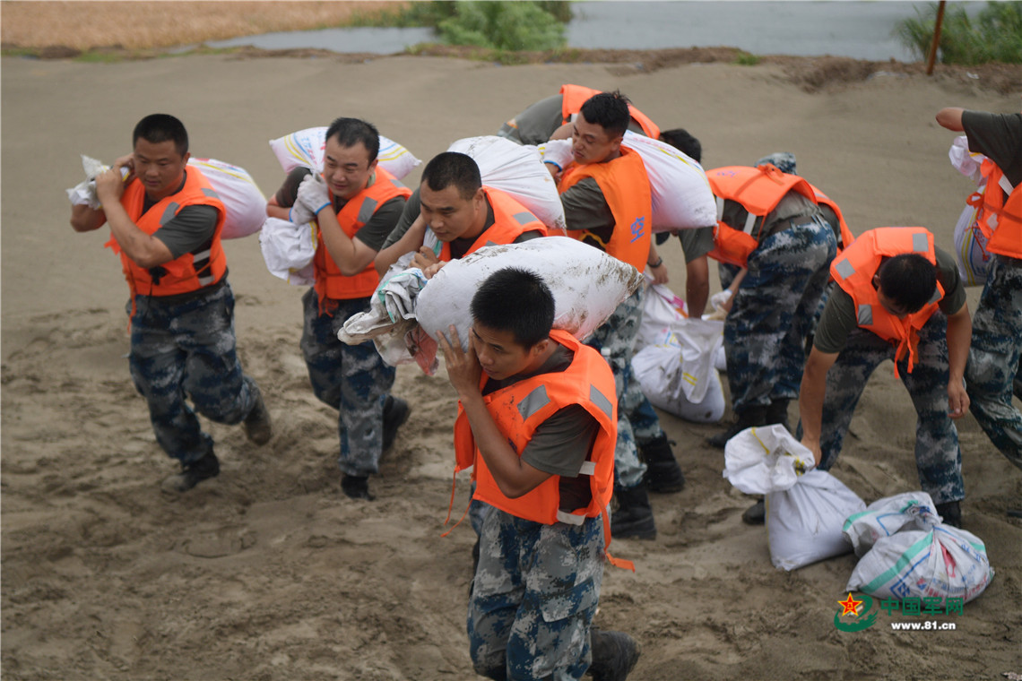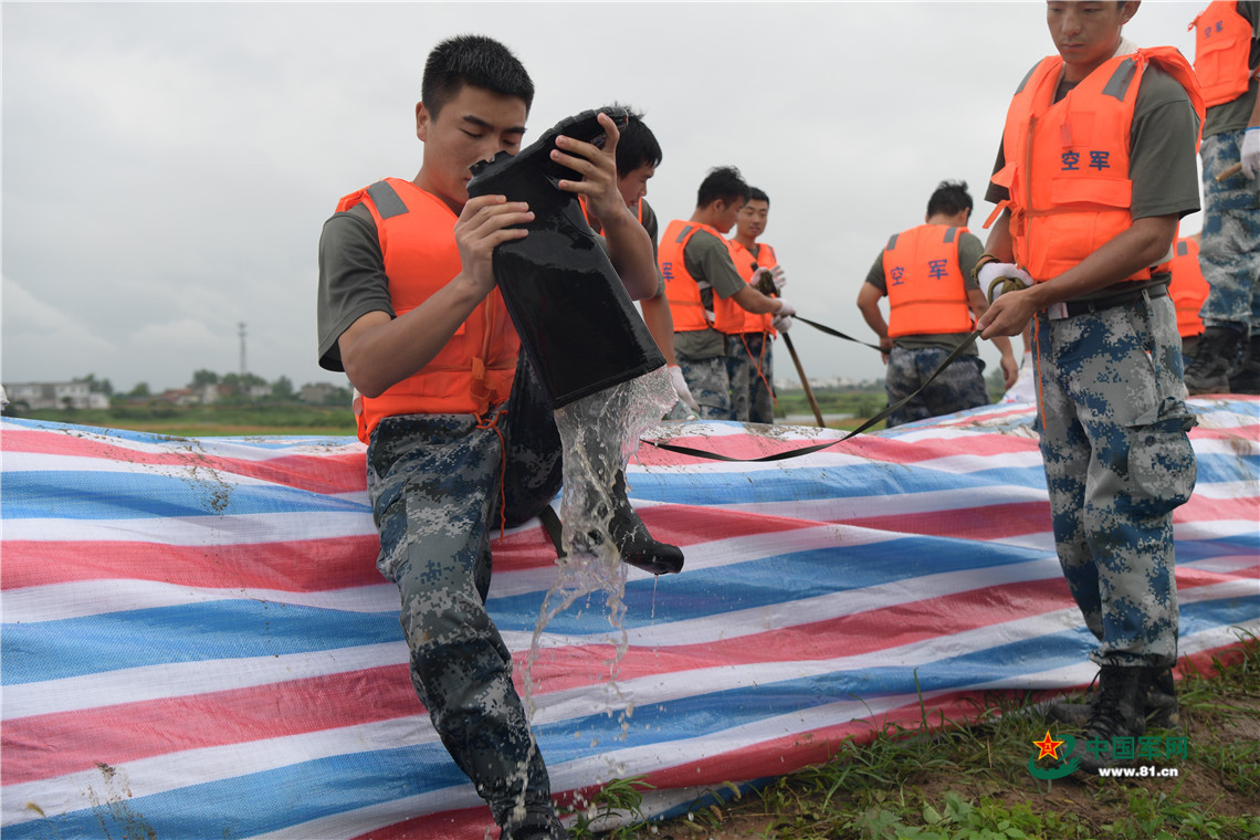 接到救援指令后,百余名東部戰(zhàn)區(qū)空軍航空兵某師官兵連續(xù)10天奮戰(zhàn)在抗洪一線,加筑子堤,排查管涌。