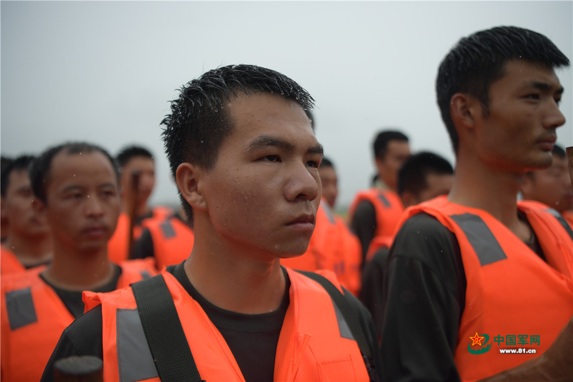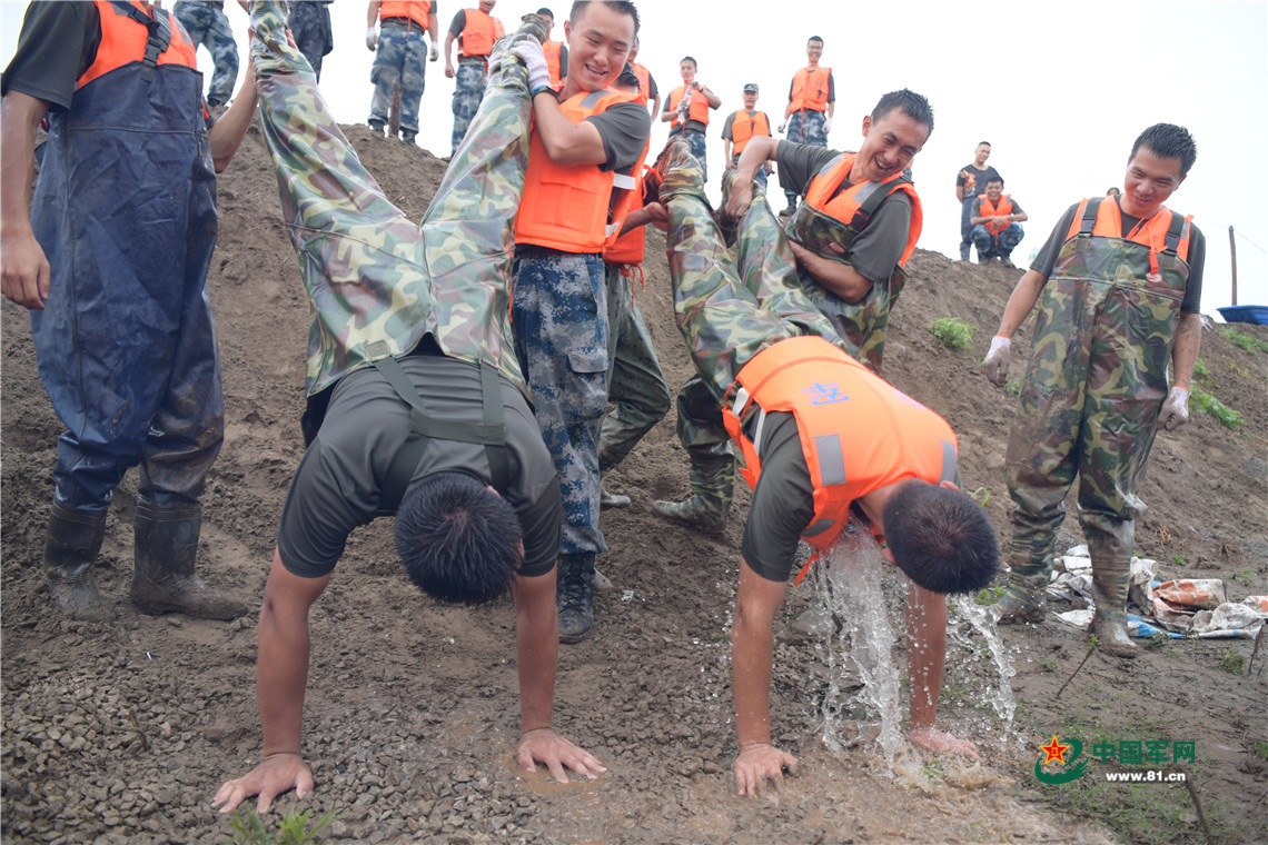 上岸后,官兵將水鞋里的泥水倒出。余紅春 攝