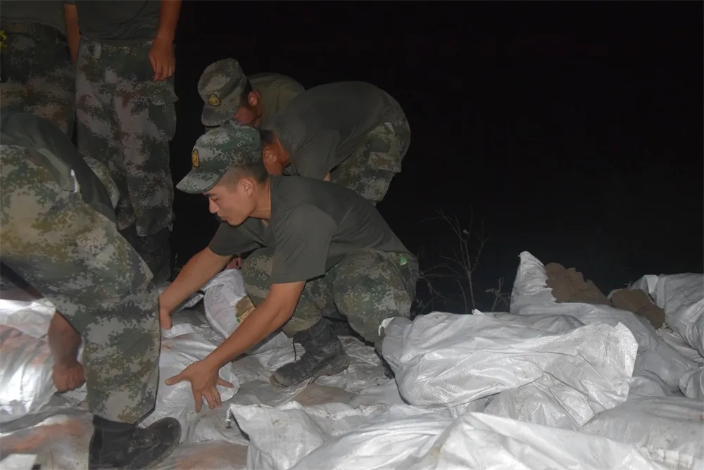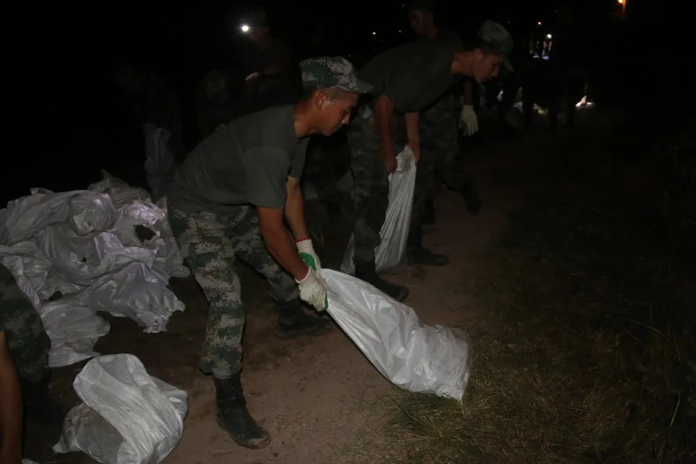 “明日可能出現(xiàn)強(qiáng)降雨,必須在第二天天亮之前完成堤壩構(gòu)筑!”消息傳來,官兵們壓力更重,士氣更高!時(shí)間已經(jīng)臨近深夜12點(diǎn),人員合理分工,輪番上陣,在一聲聲吶喊聲中,官兵們?yōu)樽约汗臍?,甩去一身疲憊。即使有人手上、身上被磨破擦破,經(jīng)過簡(jiǎn)單處理繼續(xù)投入戰(zhàn)斗。終于,經(jīng)歷了將近12個(gè)小時(shí)的不間斷作業(yè),官兵順利完成了構(gòu)筑子堤的任務(wù)。