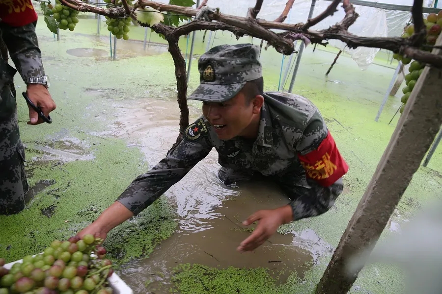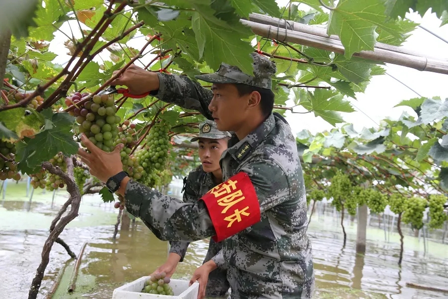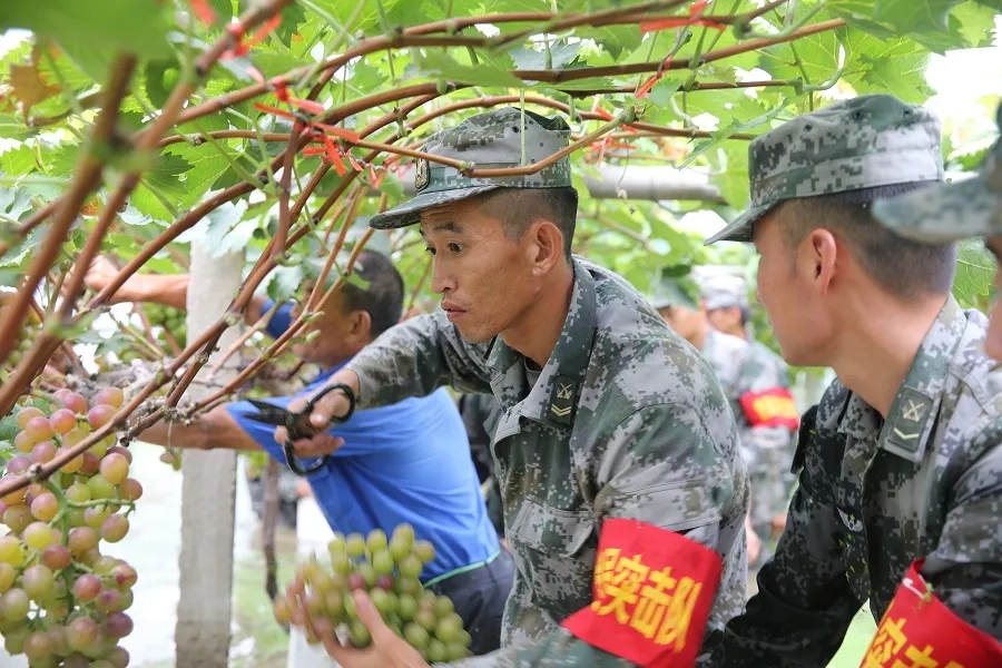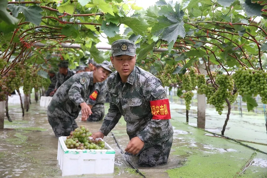 災(zāi)情就是命令,保護(hù)群眾財產(chǎn)安全刻不容緩。張雙進(jìn)當(dāng)場向機(jī)關(guān)報告了此事,得到批準(zhǔn)后,他隨即帶領(lǐng)連隊官兵進(jìn)入葡萄園展開搶摘。