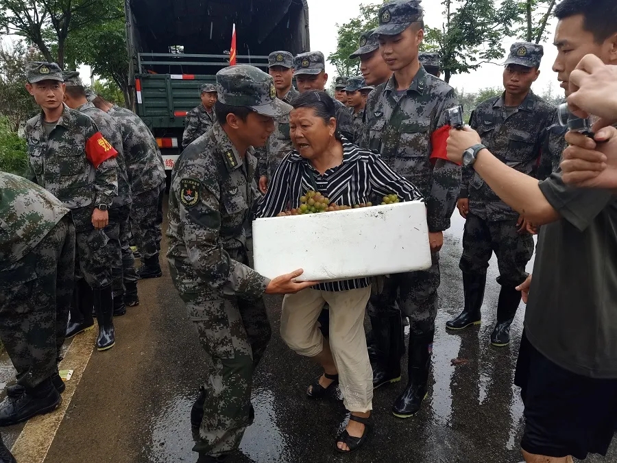 “來到災(zāi)區(qū),我們解放軍就是保護(hù)人民群眾生命財產(chǎn)安全的,這些葡萄是你們生活的希望,我們不能收?!笨粗俦鴤儓詻Q不肯收下葡萄,老倆口心疼地再次流下眼淚:“你們不搬我來搬,你們比我小孩還小,看著你們這樣辛苦,真的好心疼!”