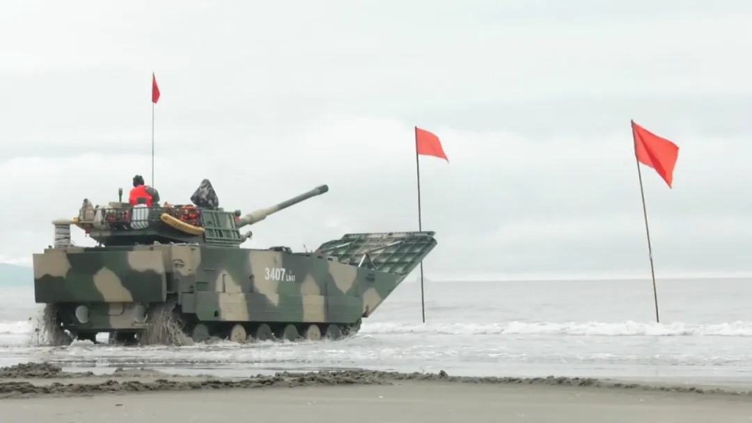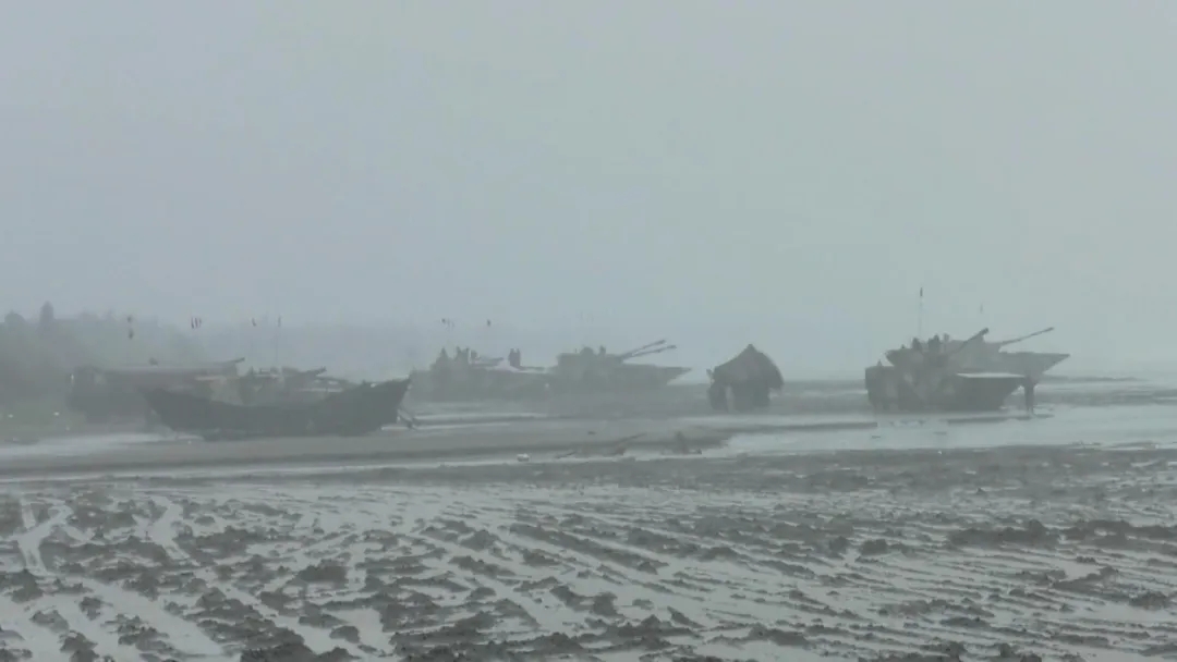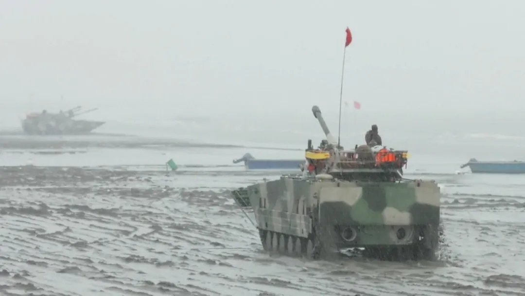 這幾天,粵東某海域,一場(chǎng)暴風(fēng)雨不期而至。然而,第74集團(tuán)軍某旅的海上登陸演練仍按計(jì)劃展開,“硬骨頭六連”的步戰(zhàn)車與兩棲突擊車組成的合成編隊(duì)泛水編波,分多路向岸灘發(fā)起突擊。
