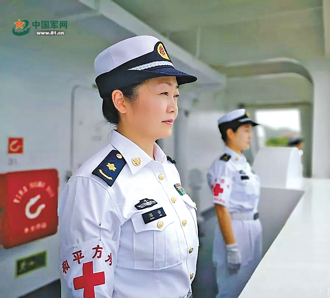 陳靜(左)隨和平方舟醫(yī)院船執(zhí)行“和諧使命”任務(wù)。