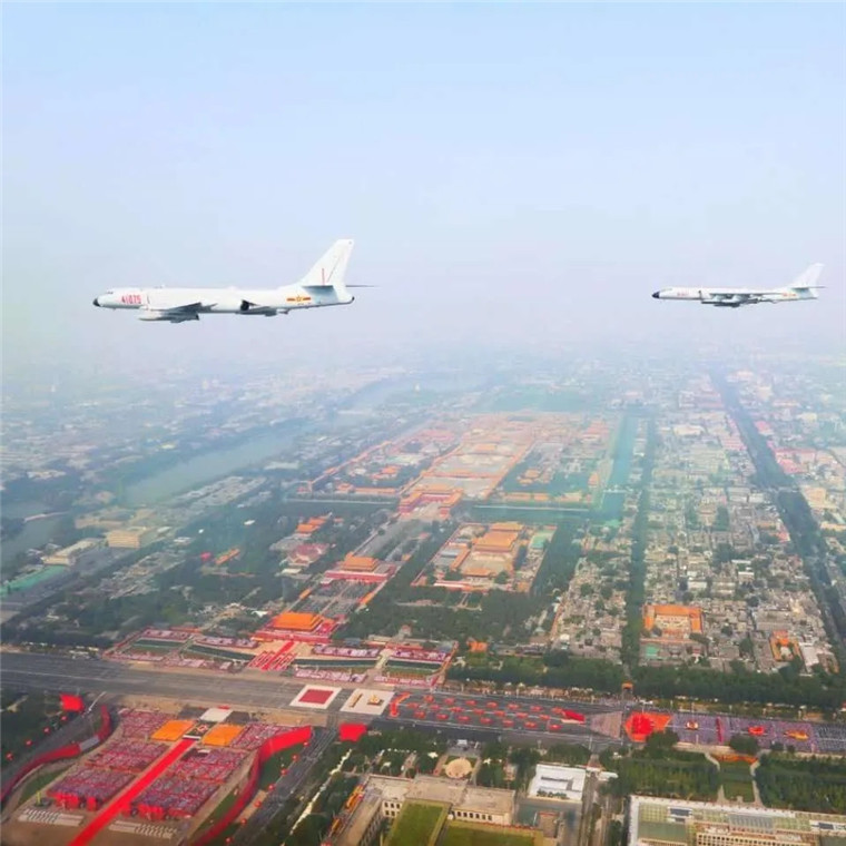 慶祝新中國成立70周年閱兵式上,轟炸機(jī)梯隊飛臨天安門廣場上空接受檢閱。