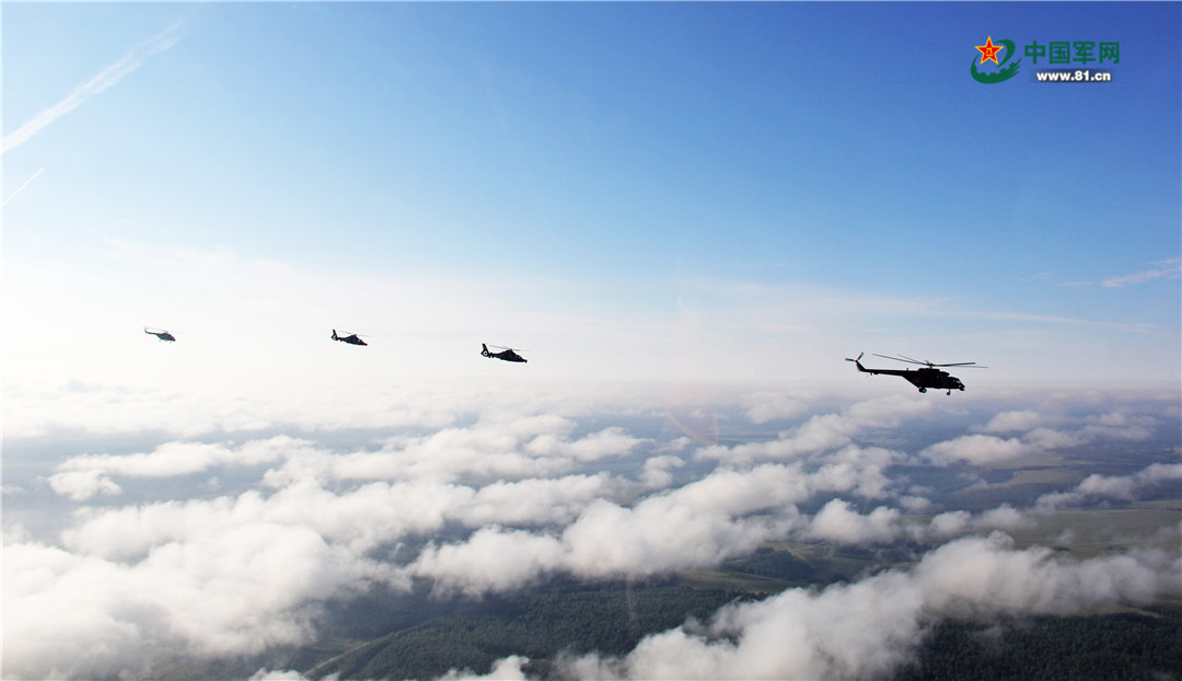 十多架由多機(jī)型混編的直升機(jī)群按作戰(zhàn)編隊(duì)依次升空
