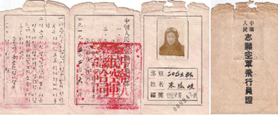 在江蘇省軍區(qū)徐州第一離職干部休養(yǎng)所老干部朱鳳岐的家中,珍藏著一張1953年2月6日,中朝人民聯(lián)軍司令部為他頒發(fā)的《中國(guó)人民志愿軍飛行員證》,上面寫著:此證只限飛行員迫降或跳傘時(shí)使用;各軍政民機(jī)關(guān)團(tuán)體對(duì)持有此證被迫降落于該地區(qū)之飛行員,均應(yīng)負(fù)責(zé)營(yíng)救和護(hù)送歸隊(duì)。