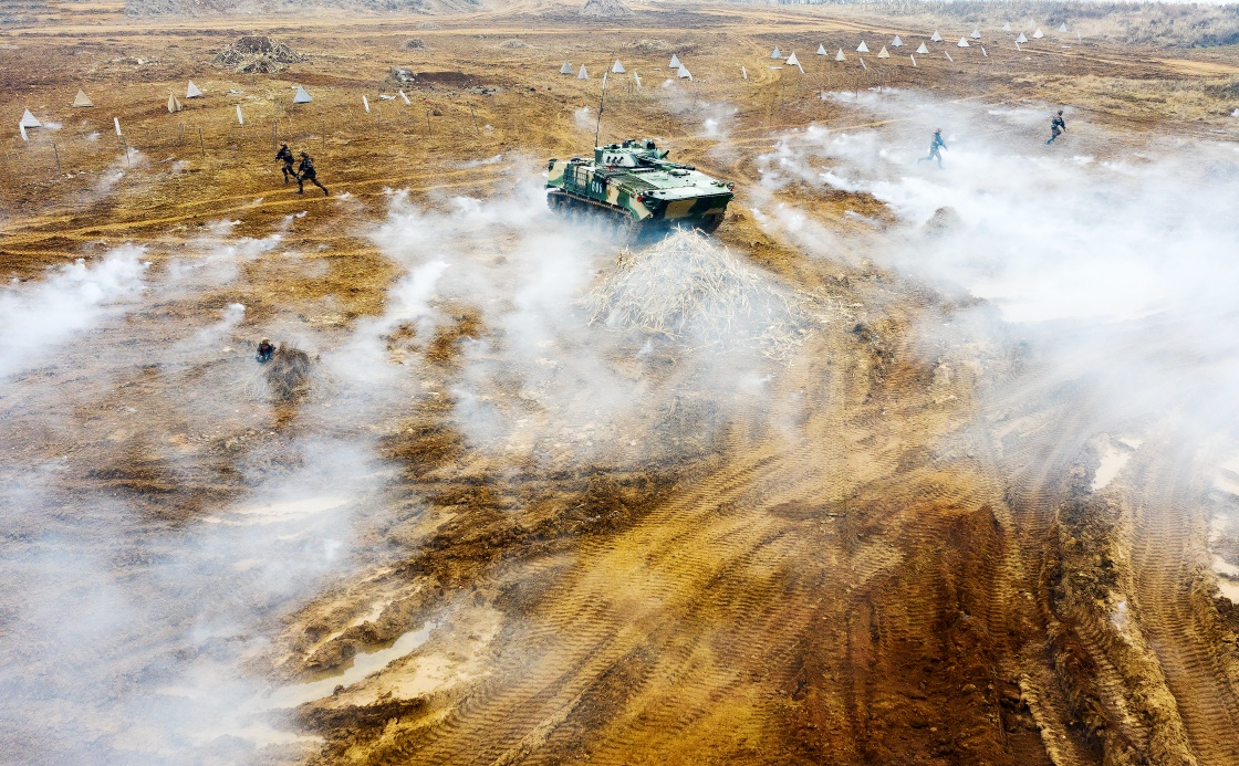 陸軍第71集團(tuán)軍某旅“王杰班”官兵在皖北某駐訓(xùn)場(chǎng)進(jìn)行步坦協(xié)同戰(zhàn)術(shù)訓(xùn)練(2018年12月19日攝)。新華社發(fā)(李志浩 攝)