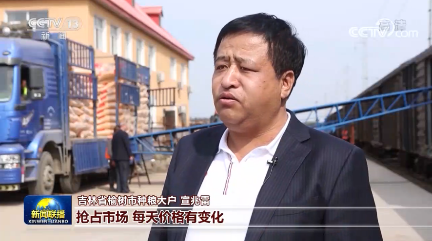 吉林省榆樹市種糧大戶 宣兆雷:沒開這個(gè)糧食班列的時(shí)候,通過海運(yùn),得一個(gè)月能到。搶占市場(chǎng),每天價(jià)格有變化,你一個(gè)月糧(運(yùn))過去之后(價(jià)格)就不一樣了。
