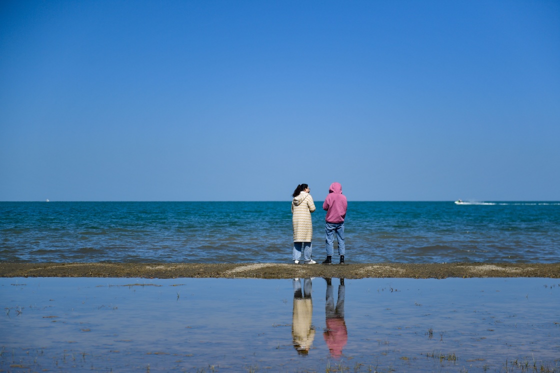 9月23日,游客在青海湖邊游玩。新華社記者 張龍 攝
