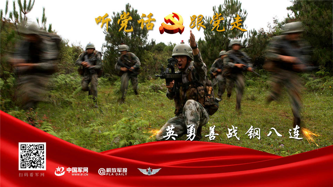 “英勇善戰(zhàn)鋼八連”官兵進行山地進攻演練。