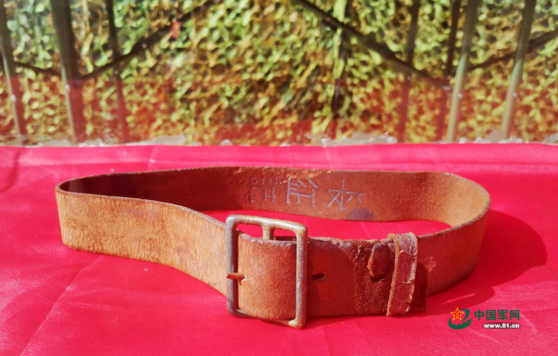 陸軍第75集團軍某紅軍旅“堅守英雄連”的傳家寶——紅軍長征時期的半截皮帶(此為復制品,真品現存于中國國家博物館復興之路展廳)。中國軍網記者孫智英 攝