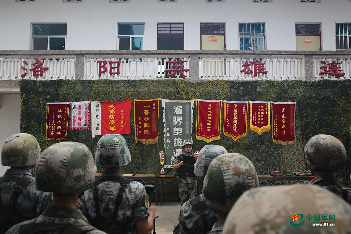 陸軍第75集團軍某紅軍旅“洛陽英雄連”官兵開展外訓出征儀式,官兵唱響連歌。中國軍網記者孫智英 攝