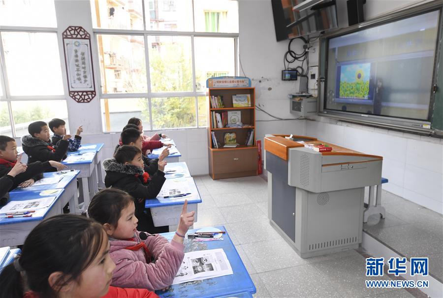 這是在重慶市石柱土家族自治縣中益鄉(xiāng)小學(xué)拍攝的“5G雙師課堂”(2019年12月12日攝)。新華社記者 王全超 攝
