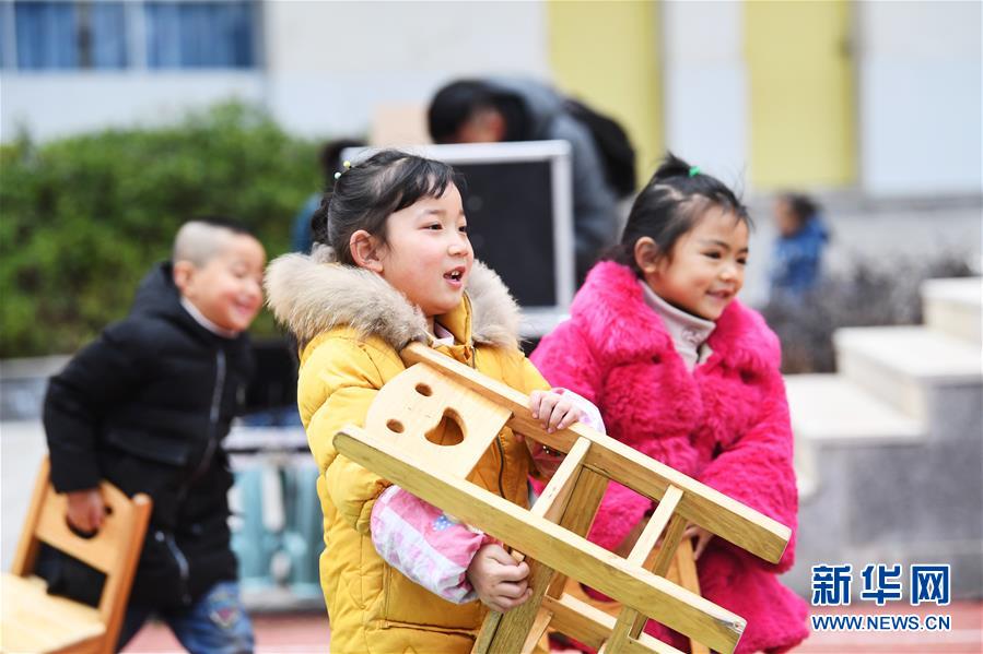 重慶市石柱土家族自治縣中益鄉(xiāng)小學(xué)的同學(xué)們搬著小椅子前往操場(chǎng)觀看文藝表演。當(dāng)日,“我的中國(guó)夢(mèng)——文化進(jìn)萬(wàn)家”中國(guó)視協(xié)文藝志愿服務(wù)小分隊(duì)走進(jìn)中益鄉(xiāng)小學(xué),為師生們帶來(lái)精彩的文藝表演(2019年12月12日攝)。新華社記者 王全超 攝