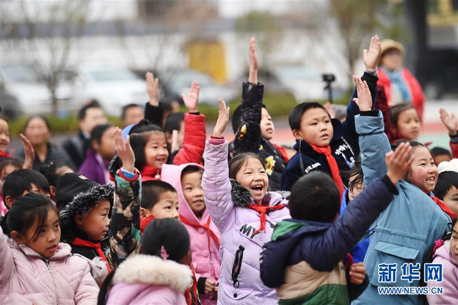 重慶市石柱土家族自治縣中益鄉(xiāng)小學(xué)的同學(xué)們?cè)谖乃囇莩霈F(xiàn)場(chǎng)與演員互動(dòng)。當(dāng)日,“我的中國(guó)夢(mèng)——文化進(jìn)萬(wàn)家”中國(guó)視協(xié)文藝志愿服務(wù)小分隊(duì)走進(jìn)中益鄉(xiāng)小學(xué),為師生們帶來(lái)精彩的文藝表演(2019年12月12日攝)。新華社記者 王全超 攝