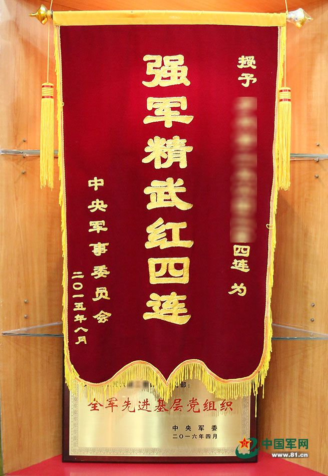 2015年8月,習(xí)主席簽署命令,授予連隊“強軍精武紅四連”榮譽稱號。七個大字,承載著領(lǐng)袖的囑托,激蕩在“紅四連”每一個官兵的胸膛。
