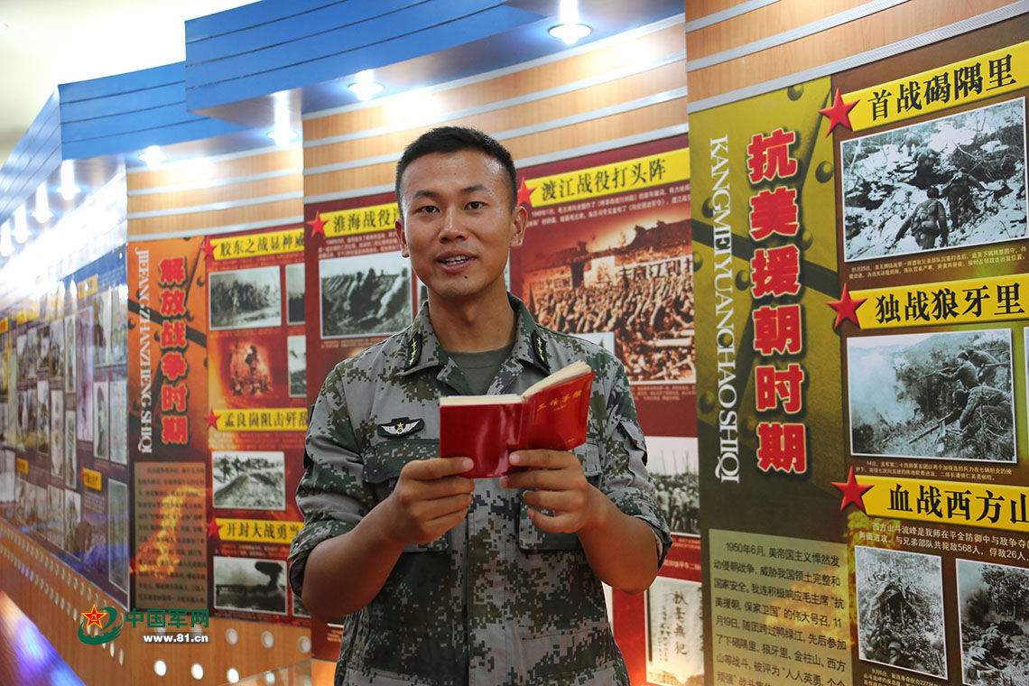 “強軍精武紅四連”指導(dǎo)員陳思宇在連史館講述紅色日記本的故事。中國軍網(wǎng)記者孫智英 攝