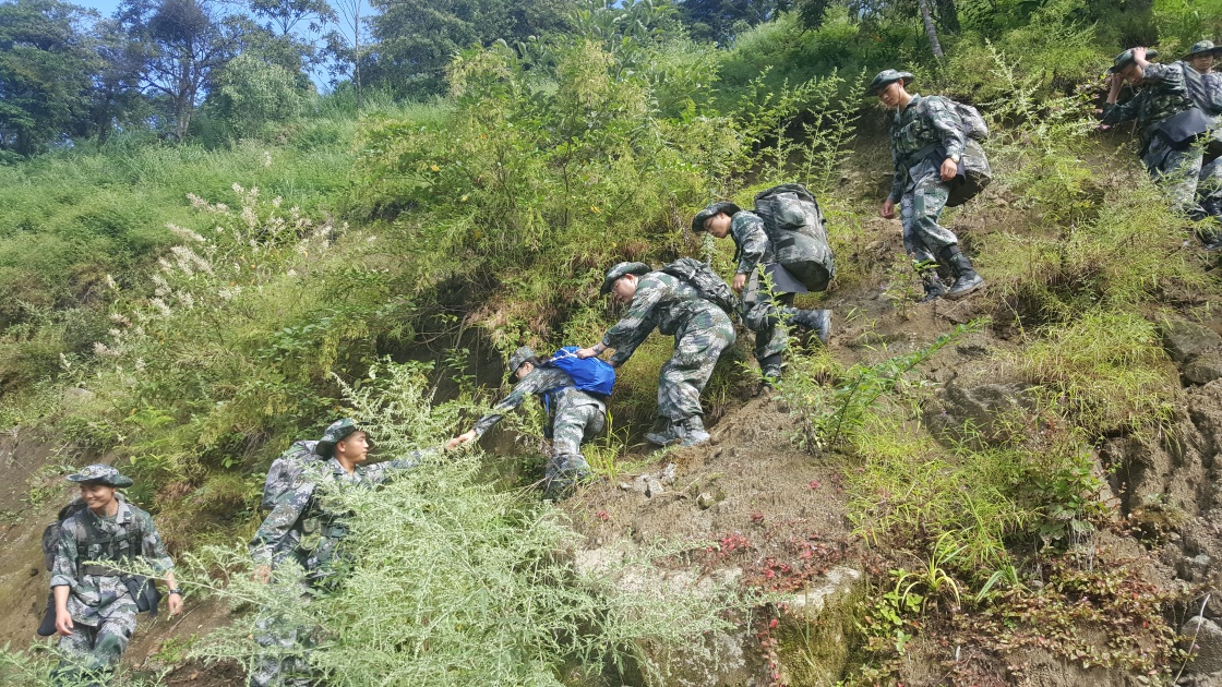 軍事科學(xué)院系統(tǒng)工程研究院某研究所科研人員在西藏墨脫與邊防戰(zhàn)士一起參加徒步巡邏,實(shí)地了解軍需保障需求(2017年9月16日攝)。新華社發(fā)(謝先達(dá) 攝)