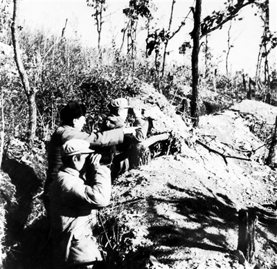 冒著敵人的“炮彈雨”,崔建功手握望遠(yuǎn)鏡沉著冷靜,指揮官兵巧妙地利用地形地物,與敵頑強(qiáng)戰(zhàn)斗。白天,敵人以猛烈的炮火狂轟濫炸,便避其鋒芒;夜晚,志愿軍組織戰(zhàn)術(shù)反擊,打敵措手不及,奪回陣地。在連續(xù)的陣地爭(zhēng)奪戰(zhàn)中,45師官兵展現(xiàn)出了“有我無(wú)敵,視死如歸”的英雄氣概。在反擊597.9高地2號(hào)陣地時(shí),遭敵地堡火力攔阻,副排長(zhǎng)歐陽(yáng)代炎沖上前去,機(jī)智勇敢地繞到敵火力點(diǎn)側(cè)面,將手雷投入地堡,敵地堡被炸毀。當(dāng)他看到一群敵人快要沖上陣地時(shí),猛然爬起撲向敵群,拉響最后一顆手雷,與敵同歸于盡。苗族戰(zhàn)士龍世昌,連續(xù)炸毀了敵人2個(gè)地堡,他沖到敵人第3個(gè)地堡前,將爆破筒塞進(jìn)去,敵人拼命往外推,他就用胸部頂著爆破筒將敵地堡炸毀……