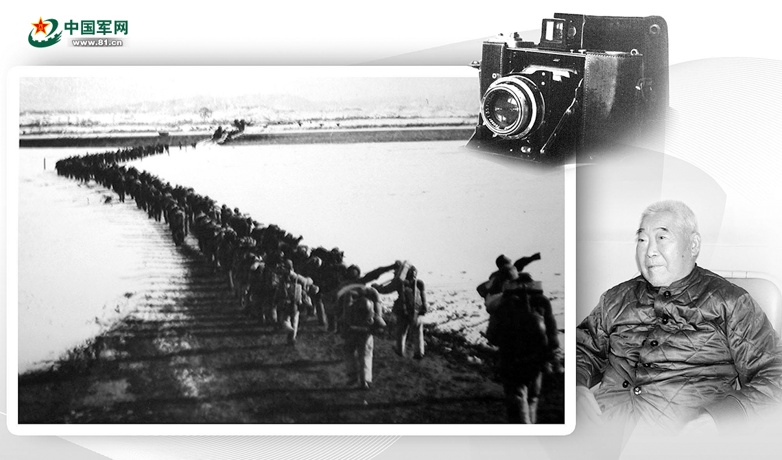 抗美援朝戰(zhàn)爭時期,黎民在志愿軍第64軍政治部擔(dān)任攝影組組長。1951年2月中旬,他所在的部隊奉命開赴朝鮮戰(zhàn)場,準(zhǔn)備參加第五次戰(zhàn)役。那年冬天,天氣格外寒冷,皚皚冰雪覆蓋大地。部隊接到過江命令后,很快在鴨綠江上搭起浮橋,日夜兼程疾速過江。