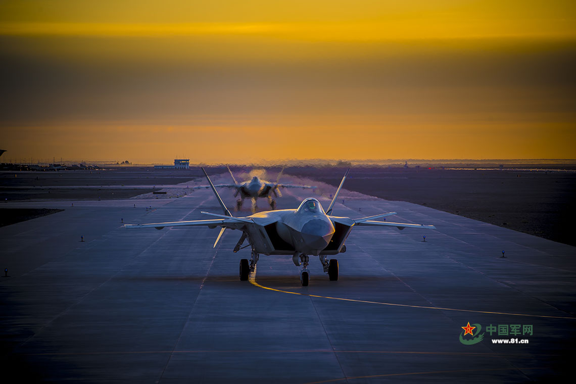 基地某部殲-20戰(zhàn)機(jī)編隊(duì)出征。楊軍 攝