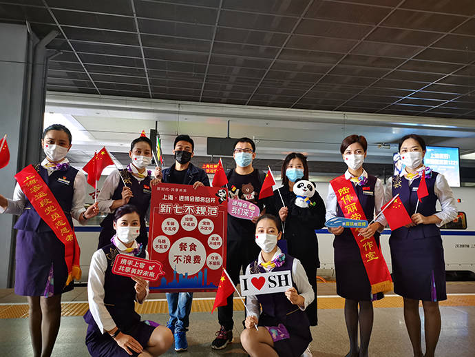 上??瓦\(yùn)段乘務(wù)人員做好進(jìn)博會(huì)主題宣傳。