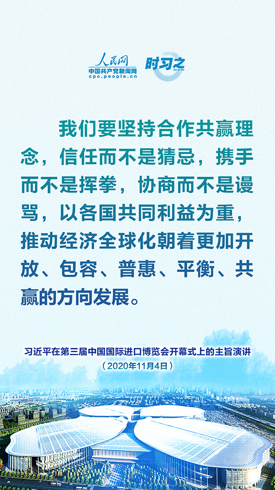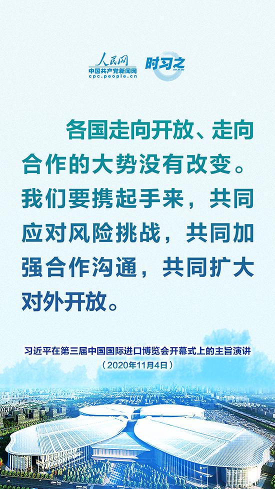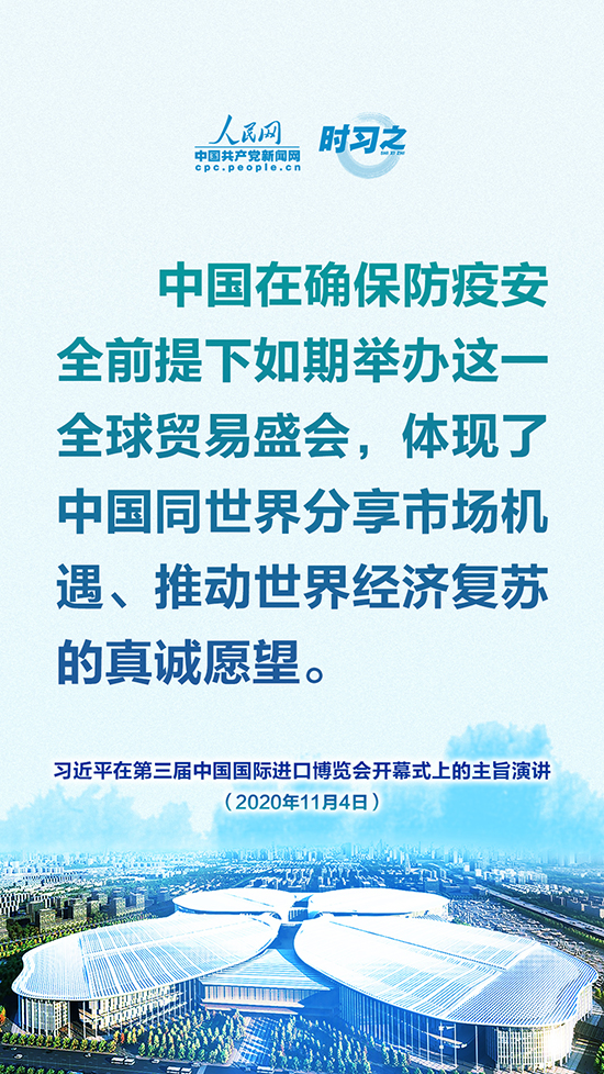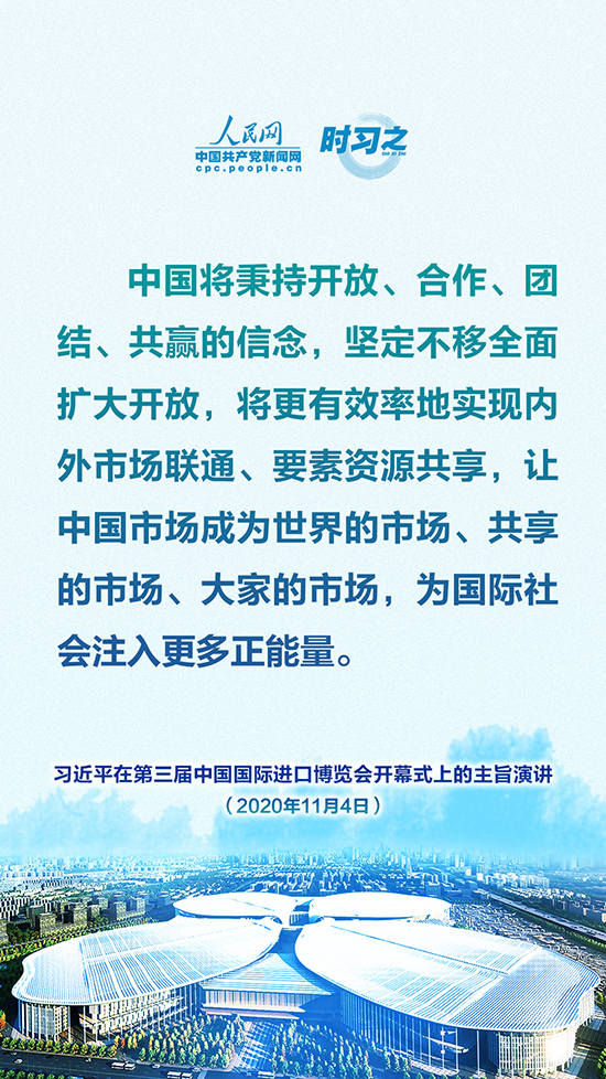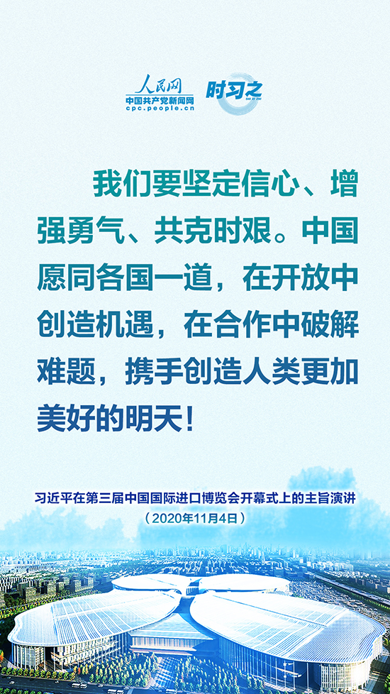 第三屆中國國際進口博覽會開幕式于11月4日晚在上海舉行,國家主席習近平以視頻方式發(fā)表主旨演講。人民網(wǎng)·中國共產(chǎn)黨新聞網(wǎng)“時習之”欄目制作了10張海報,帶您一起回顧習近平這些擲地有聲的話語。