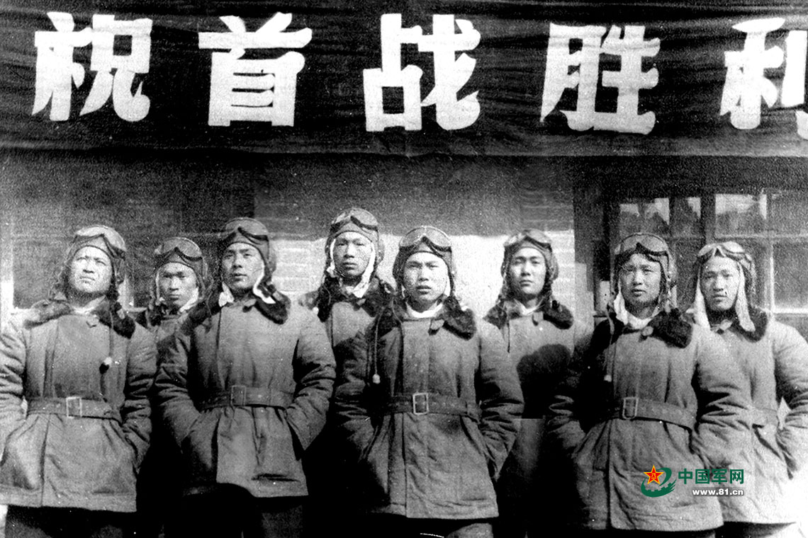 入朝作戰(zhàn)首戰(zhàn)勝利后部分飛行員合影。(圖片提供:朱星星)