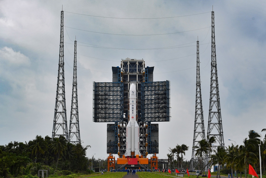 11月17日,長征五號遙五運載火箭和嫦娥五號探測器在中國文昌航天發(fā)射場完成技術區(qū)總裝測試工作后,垂直轉(zhuǎn)運至發(fā)射區(qū),計劃于11月下旬擇機實施發(fā)射。新華社記者 郭程 攝