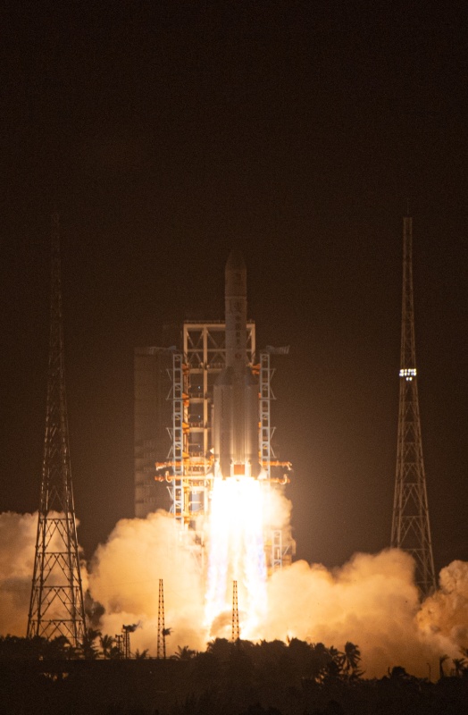 11月24日4時(shí)30分,我國(guó)在中國(guó)文昌航天發(fā)射場(chǎng),用長(zhǎng)征五號(hào)遙五運(yùn)載火箭成功發(fā)射探月工程嫦娥五號(hào)探測(cè)器,火箭飛行約2200秒后,順利將探測(cè)器送入預(yù)定軌道,開(kāi)啟我國(guó)首次地外天體采樣返回之旅。這是長(zhǎng)征五號(hào)遙五運(yùn)載火箭發(fā)射升空。