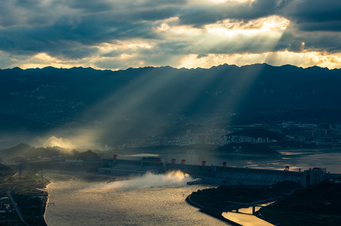 這是在湖北省宜昌市拍攝的夕陽下的三峽,宛如一幅美麗畫卷(8月16日攝)。