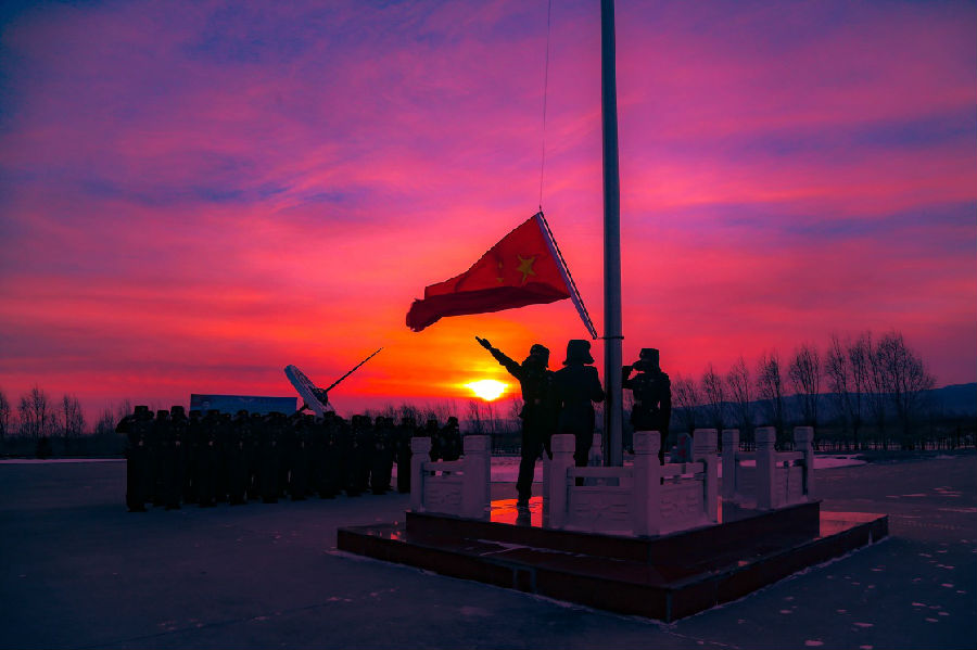 哨所最神圣的時(shí)刻,就是在祖國(guó)第一縷朝陽(yáng)中升起國(guó)旗。