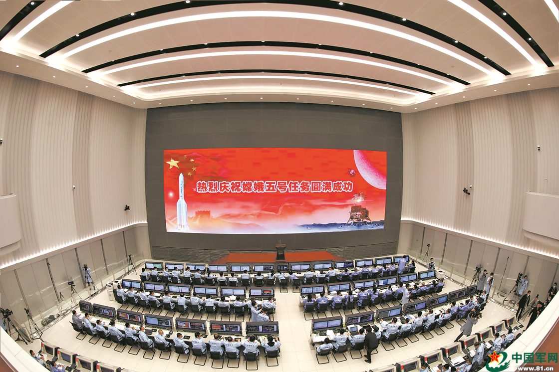 2020年12月17日凌晨,嫦娥五號返回艙成功著陸,北京航天飛行控制中心工作人員歡慶勝利。