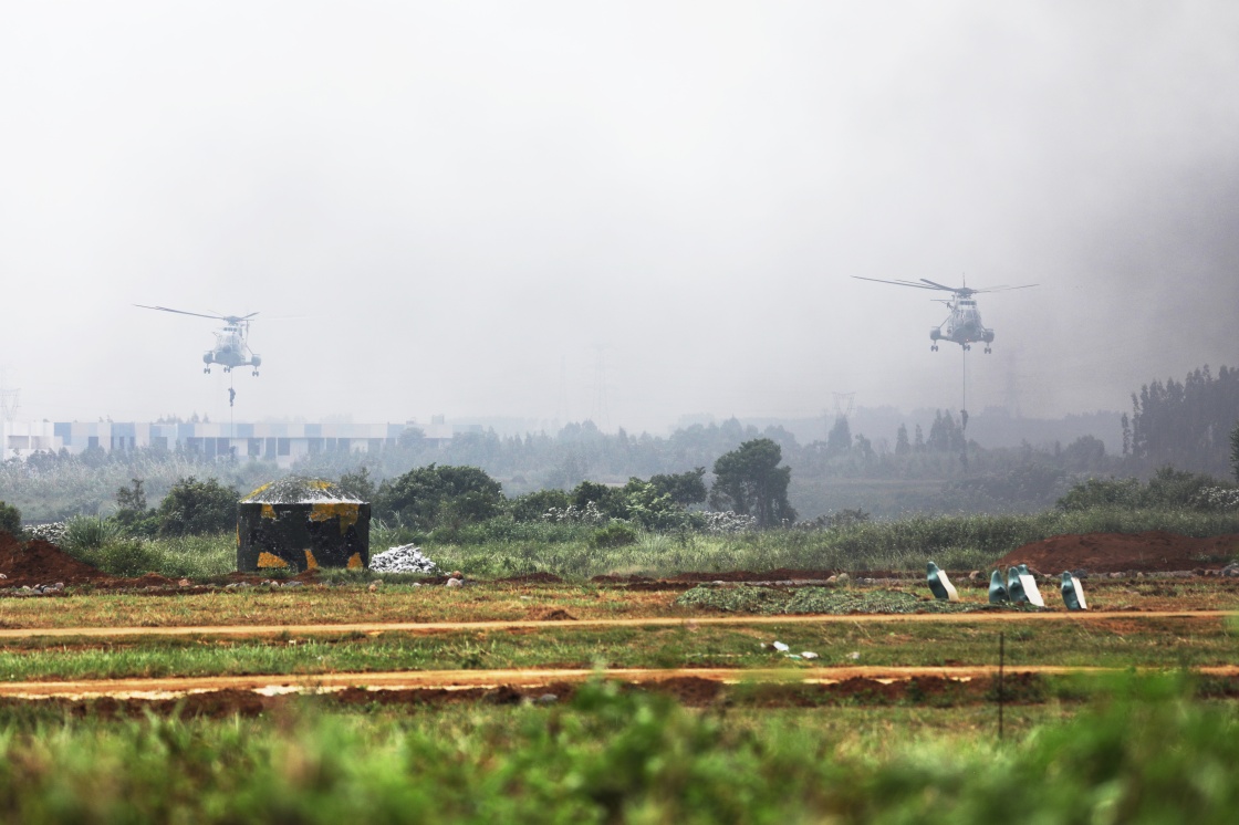 演練中,海軍陸戰(zhàn)隊某旅機降分隊飛抵至目標區(qū)域(2020年10月13日攝)。新華社發(fā)(劉宇翔 攝)