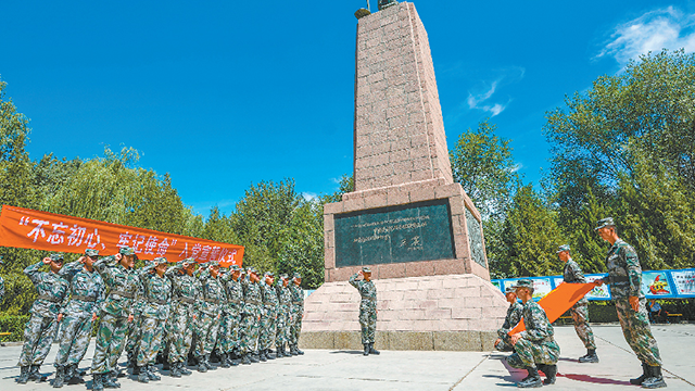 6月上旬,新疆軍區(qū)某團開展“不忘初心、牢記使命”入黨宣誓儀式,激勵新黨員立足崗位建功。