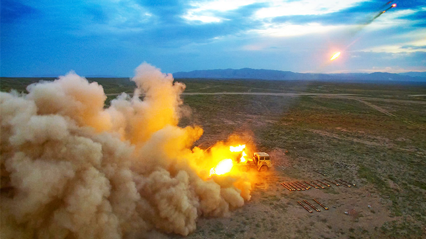 茫茫戈壁上,滾滾彌漫的硝煙,伴隨著震耳欲聾的轟鳴聲,一條條“火龍”呼嘯而出,劃破蒼穹刺入山澗,精確地命中靶標(biāo)!
