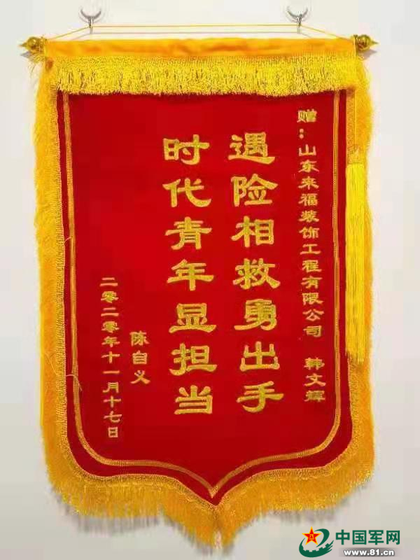 “小伙子,謝謝你救了我!”12月6日大清早,退伍軍人韓文輝收到了一面沉甸甸的錦旗,上面印著“遇險(xiǎn)相救勇出手,時(shí)代青年顯擔(dān)當(dāng)”兩行大字。這是濟(jì)南市交警帶著被救傷員陳自義專程送來(lái)的。