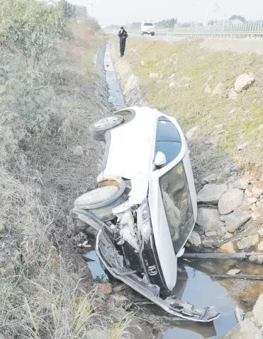11月29日14時15分左右,黃睿正駕車和妻子在路上,突然看到前方一輛車偏離道路,沖進(jìn)路邊深溝并側(cè)翻,駕駛室一側(cè)朝下,副駕駛室一側(cè)朝上。
