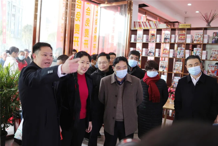 ▲周光偉向參加揭牌儀式的領(lǐng)導(dǎo)和市民介紹書房情況。